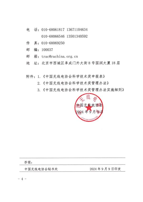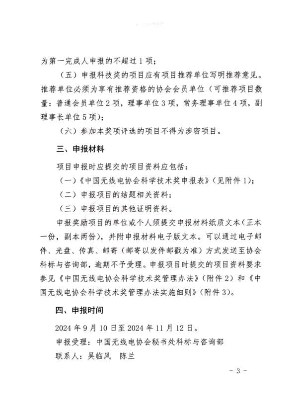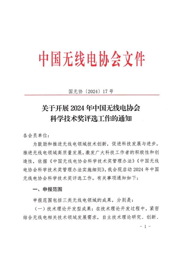 关于开展2024年“中国无线电协会科学技术奖”评选工作的通知