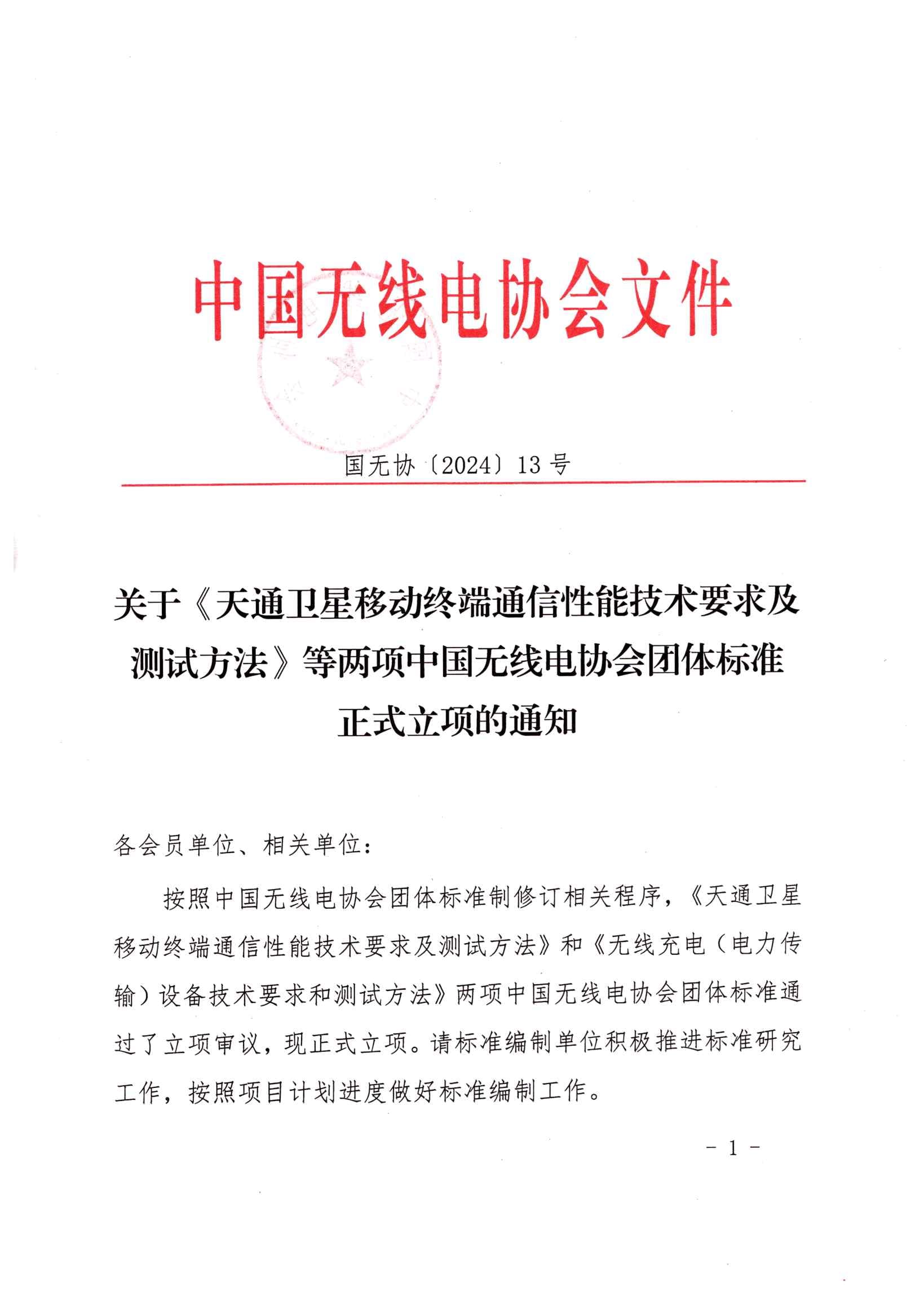 关于《天通卫星移动终端通信性能技术要求及测试方法》等两项中国无线电协会团体标准正式立项的通知