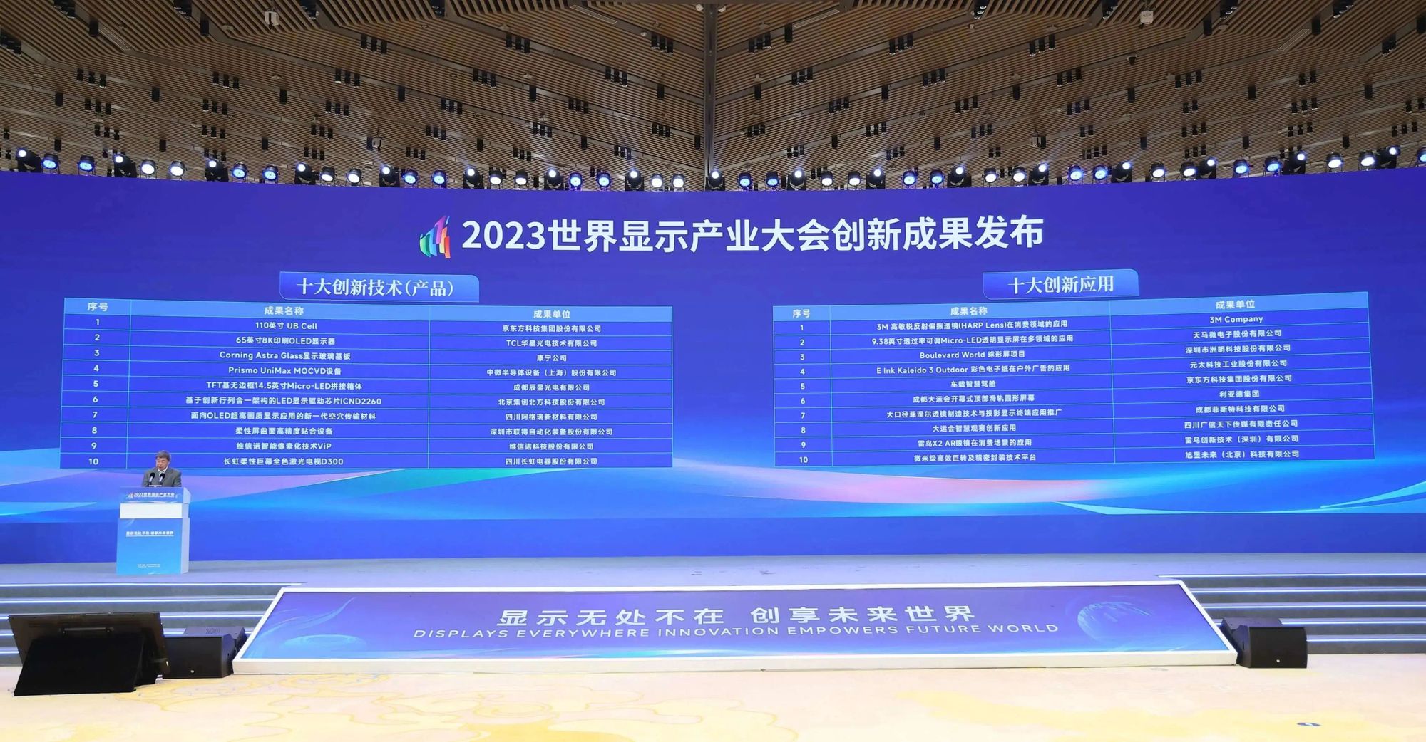 ▲发布了2023世界显示产业大会创新成果“十大创新技术(产品)、十大创新应用”